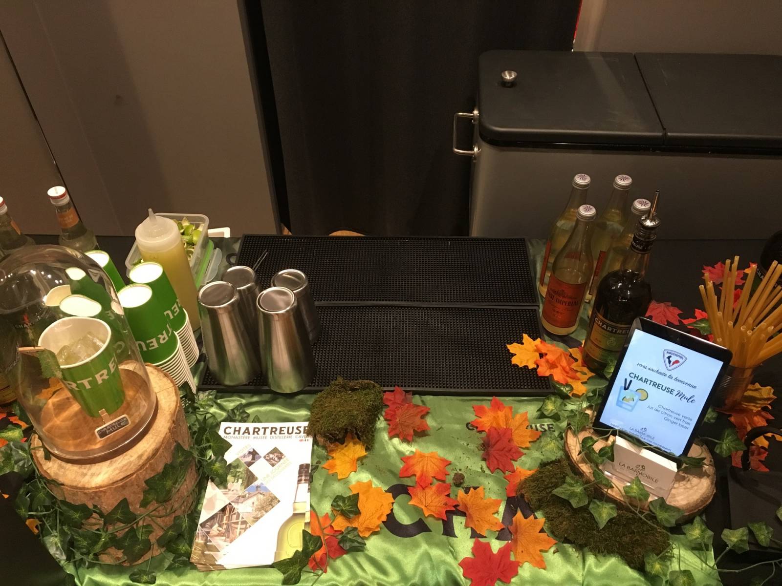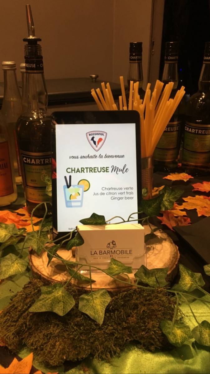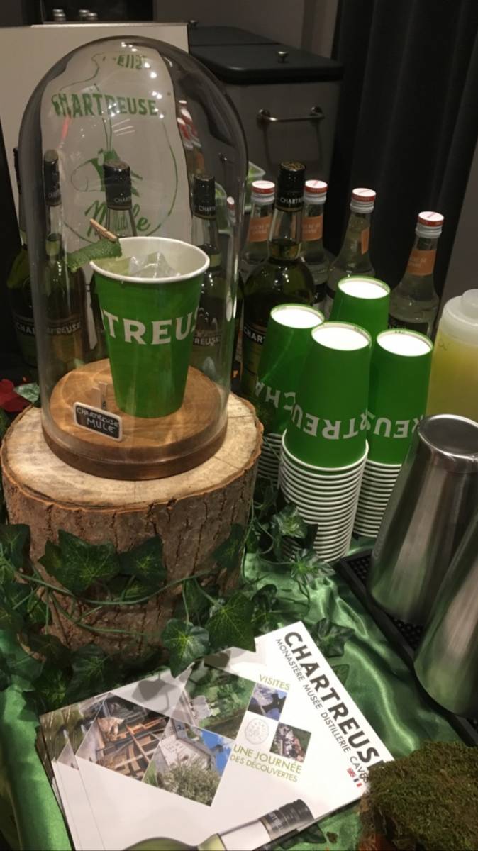 Clément, à mis en place un bar à cocktails, avec à disposition des produits de la marque Chartreuse uniquement, proposant une carte des cocktails avec 2 cocktails incontournables de leur livre d'or, Chartreuse Mule et Chartreuse Sour.